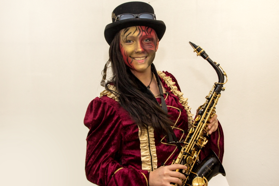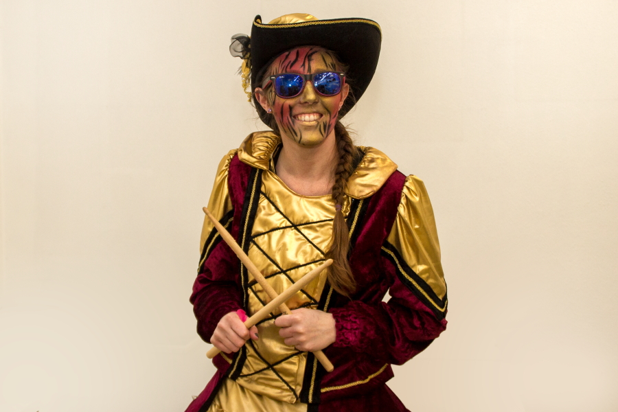 Eine Dame ganz groß. Laureen oder auch „Sekthex“ sorgt nicht nur mit ihren Tempelblocks für grelle Akzente in den Stücken sondern kümmert sich um die Organisation von Auftrittsterminen unserer Mannschaft. Sie hat außerdem tatkräftige Unterstützung von weiteren verrückten "Klepferle". Buchungen können gerne über das Kontaktformular getätigt werden :-)