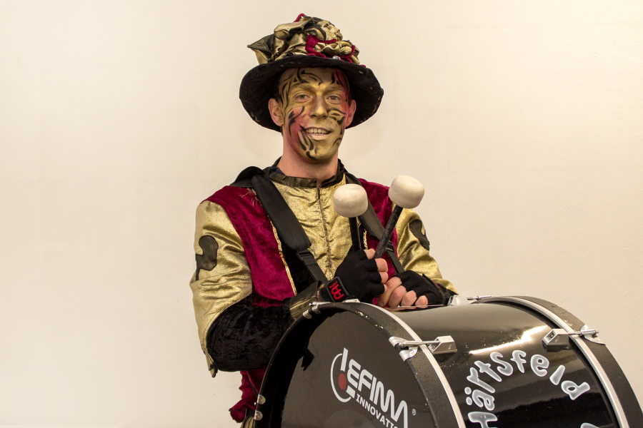 Es wird laut & wild. Unsere Jungs an der großen Trommel unterstützen das Schlagwerk mit kräftigen Trommelschlägen. Sie lassen sich von der Größe ihres Instrumentes nicht irritieren und glänzen teilweise mit „akrobatischen Dance-Moves“ zum entsprechenden Takt.